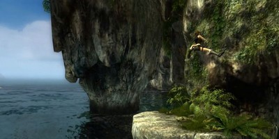Pour un joueur non averti, c'est ici que les choses se corsent : mais où va-t-on ? Sautant vers l'arrière, elle s'accroche à une toute petite corniche sur laquelle elle parvient à se hisser. Collée au mur, elle progresse lentement, jusqu'à ce que la caméra fasse un plan large. Après un instant d'hésitation, Lara s'élance vers une petite plate-forme et atterrit avec souplesse.