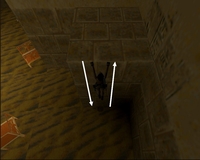 Descendre à droite et aller dans la nouvelle salle. Aller à gauche, et descendre le long des blocs. Une fois en bas, remonter immédiatement sur le bloc et tuer en toute sécurité 2 momies qui apparaissent.