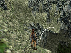 Courir vers le fond de la grotte. Aller dans l'eau, puis au fond à gauche. Grimper et suivre la corniche. Tuer 1 tigre d'en haut. Sauter pour suivre la corniche. Grimper. Se retourner et faire un saut avec élan vers une autre corniche. Continuer.