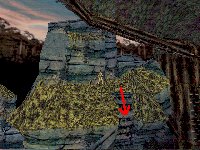 S'agripper à l'échelle de pierre. Descendre, traverser à gauche, se rétablir. S'introduire dans le petit tunnel. Dans la salle suivante, s'agripper à l'échelle au plafond et traverser vers l'ouverture en hauteur.