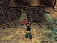 Suivre le long couloir avec une lumière verdâtre vers la salle avec le grand bassin. Pour descendre dans la salle sans perdre de vie, se mettre dos au trou, reculer (comme pour tomber), s'agripper au rebord (avec ACTION) puis lâcher : Lara tombe de moins haut. En maintenant ACTION durant la chute, la perte de vie est encore plus réduite. Aller vers le bassin. Il est temps de découvrir la natation !