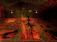 Entrer dans le temple. Descendre le couloir. Retrouver le guide dans la salle. Tuer 2 scorpions. Dans le coin sombre, ramasser une recharge torche.