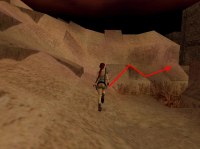 Suivre le chemin vers la gauche et observer la scène. Tuer un scorpion géant et ramasser une recharge revolver, puis faire demi tour et tourner à gauche pour aller ramasser une grande trousse au bout. Revenir et franchir le gouffre par la gauche.
