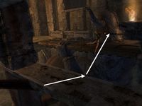 Repérer la corniche courant sur le mur de gauche et sauter vers celle-ci. Se déplacer vers la gauche, contourner le coin et sauter vers l'arrière pour atteindre le bras de la statue.