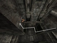 1. Après le premier jet de fléchettes, dans la pièce du fond, monter les marches, franchir le ponton cassé, sauter vers la plate-forme en bois, puis vers le rebord en pierre. Sauter de rebord en rebord, emprunter le passage voûté et sauter sur la petite plate-forme. Se laisser glisser et sauter rapidement pour agripper le rebord. Ramasser 1 artefact. Suivre le passage, sauter vers la corniche et progresser vers la gauche pour pénétrer dans le boyau suivant.