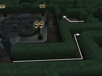 Artefact 2 : Avancer dans le labyrinthe et tourner toujours à gauche jusqu'à arriver à un parterre en forme de croix. Ramasser 1 artefact. Revenir à l'entrée du labyrinthe.