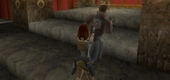 (Lara sort du sanctuaire et s'arrête pour habituer ses yeux à la lumière du soleil. Elle est embusquée par les hommes de main de Natla)