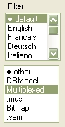 Comme on l'a dit plus haut, les fichiers musicaux se trouvent sous la mention Mulitplexed . La première chose à faire est de mettre l'extension en surbrillance dans les filtres.